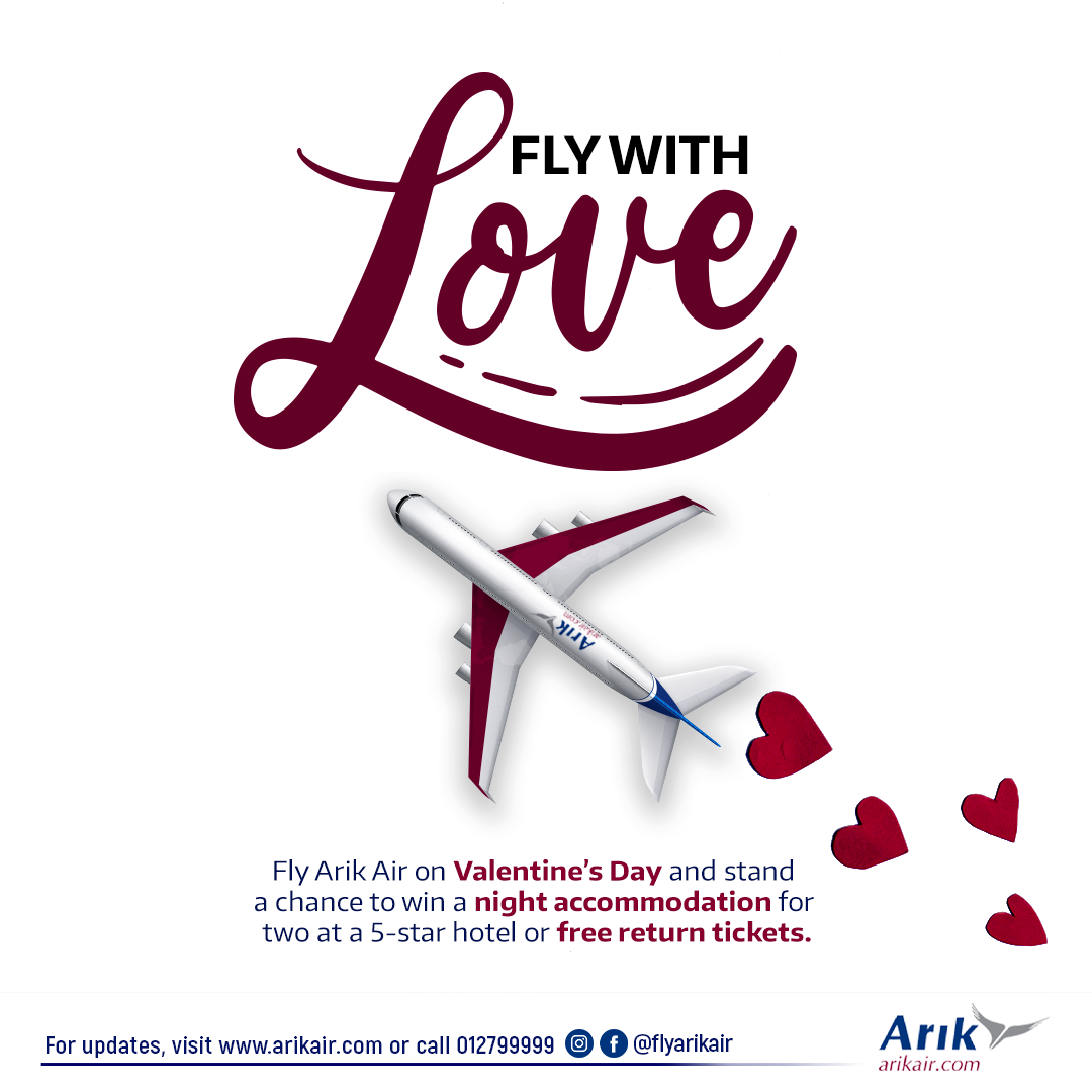 Arik Air said it is embarking on the Valentine’s Day giveaways as a show of love for its esteemed guests who have supported and trusted the airline over the years.
