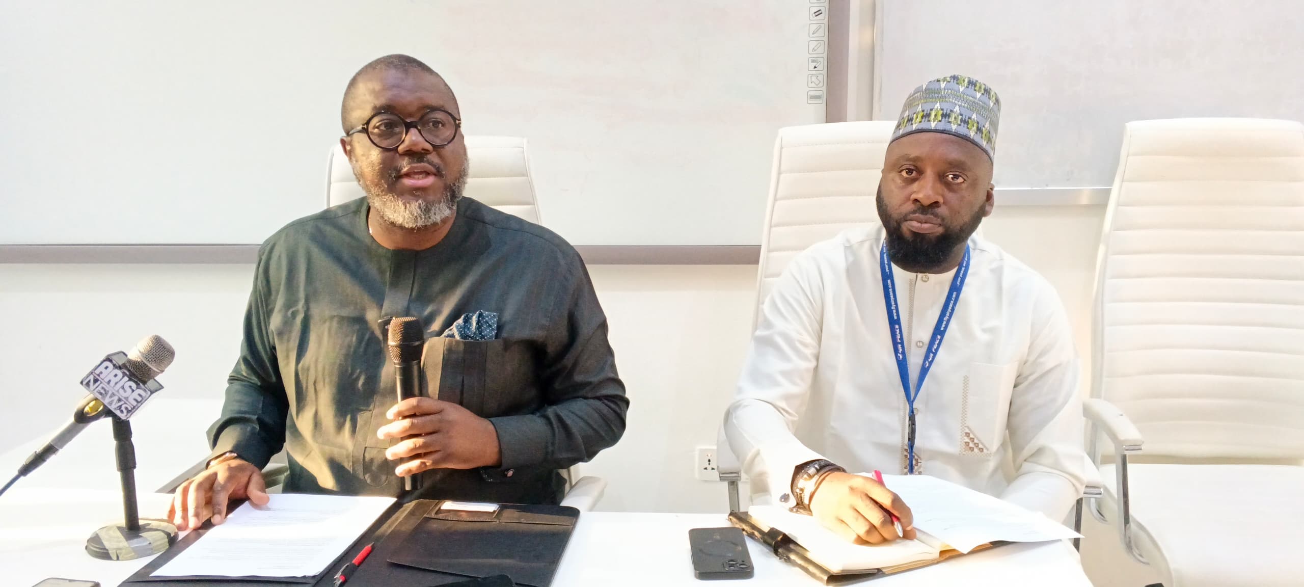 Chief commercial officer, Mr Nowel Ngala (left) and Head, Ground Operations, Air Peace during a briefing at the airline’s headquarters in Lagos