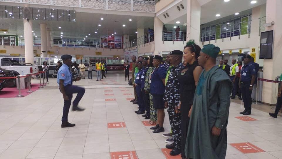Passengers passing through the first private airport in Nigeria were treated to an unexpected spectacle as the AVSEC officers, donned in their navy blue and sky-blue uniform showcased their talents in a choreographed performance. The performance included soul-stirring rendition of the National Anthem and a grand national salute that resonated with the spirit of unity and patriotism.