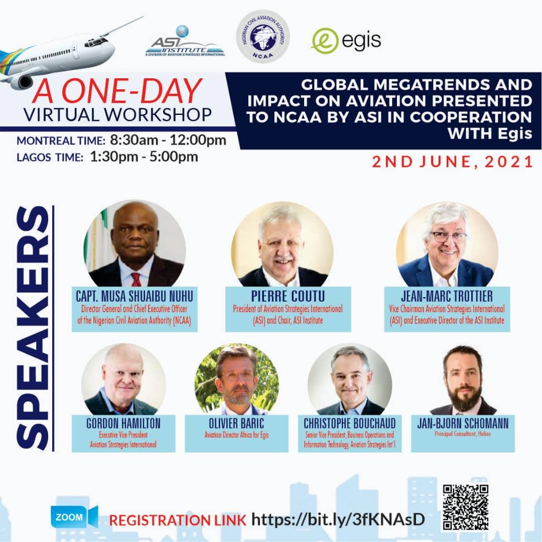 The Nigerian Civil Aviation Authority (NCAA) in conjunction with the ASI Institute and Egis is set to organise a day workshop on the global megatrends and opportunities in the sector.