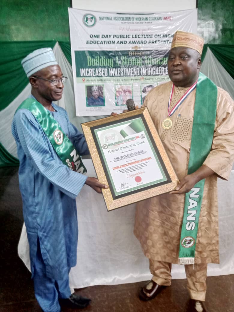 He was nominated and, selected among the few Nigerian personalities that received the Leadership Award at the NANS Public Lecture in A B U Zaria, Kaduna State.