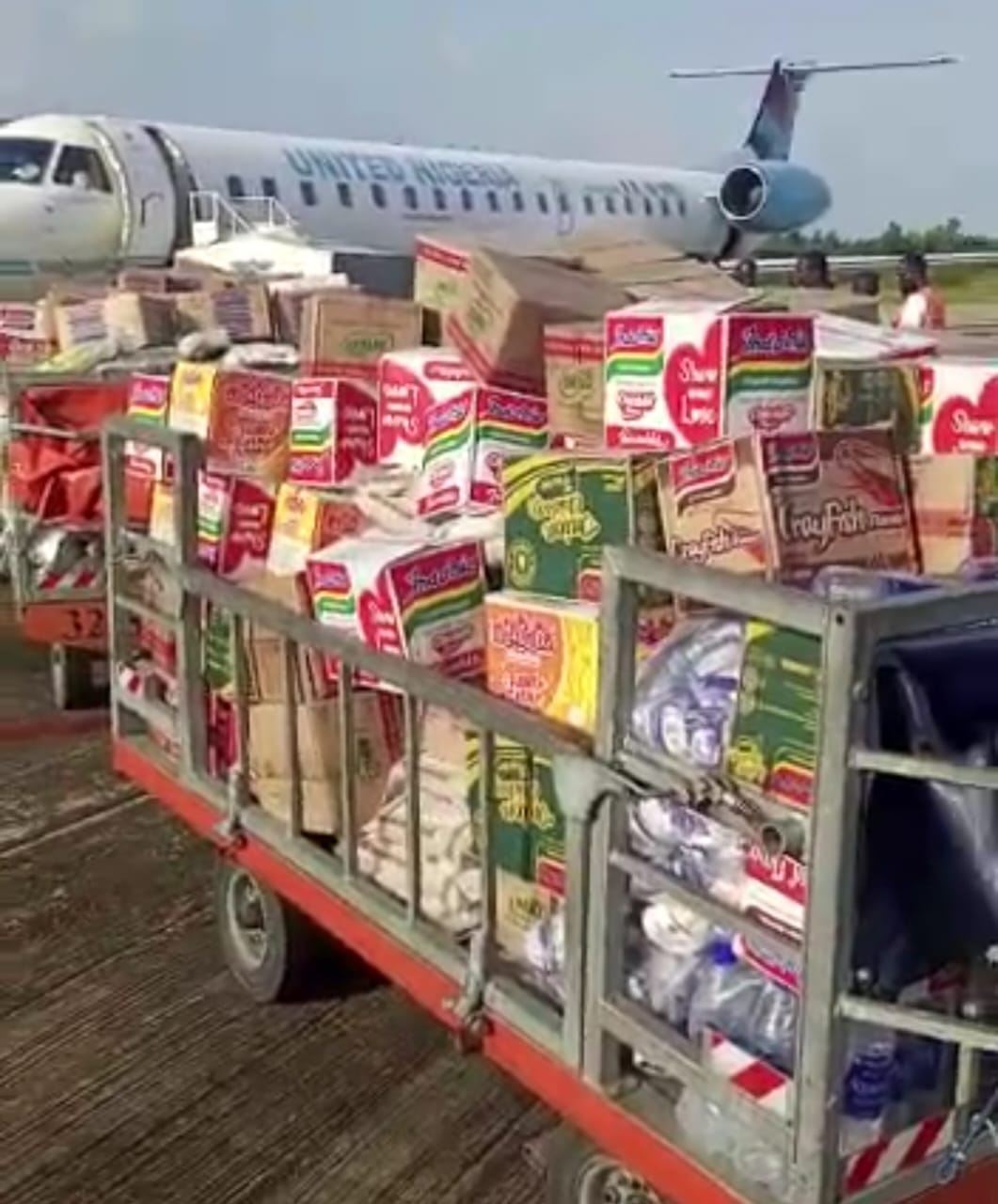 The United Nigeria Airlines has flown relief materials to Yenagoa for distribution to victims of the devastating flood disaster in Bayelsa State.